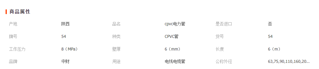 中財 cpvc電力管 電線電纜保護套管 cpvc電力保護管 現(xiàn)貨銷售