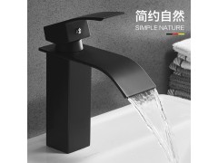 瀑布水龍頭 衛(wèi)生間洗臉盆面盆單孔龍頭 臺上盆臺下盆扁嘴水龍頭