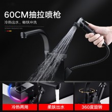 黑色廚房菜盆抽拉式水龍頭 多功能增壓噴槍機(jī)器人冷熱混水龍頭
