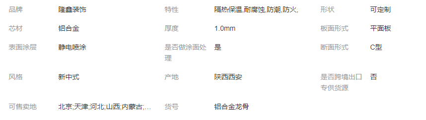 鋁合金龍骨是在鐵皮烤漆龍骨上的改進。因為鋁經過氧化處理之后不會生銹和脫色,原來的鐵皮烤漆龍骨時間長了會因為氧化而導致生銹,發(fā)黃,掉漆。特點:鋁合金龍骨具有強度高,質量較輕,個性化性能強,裝飾性能好,易加工,安裝便捷。